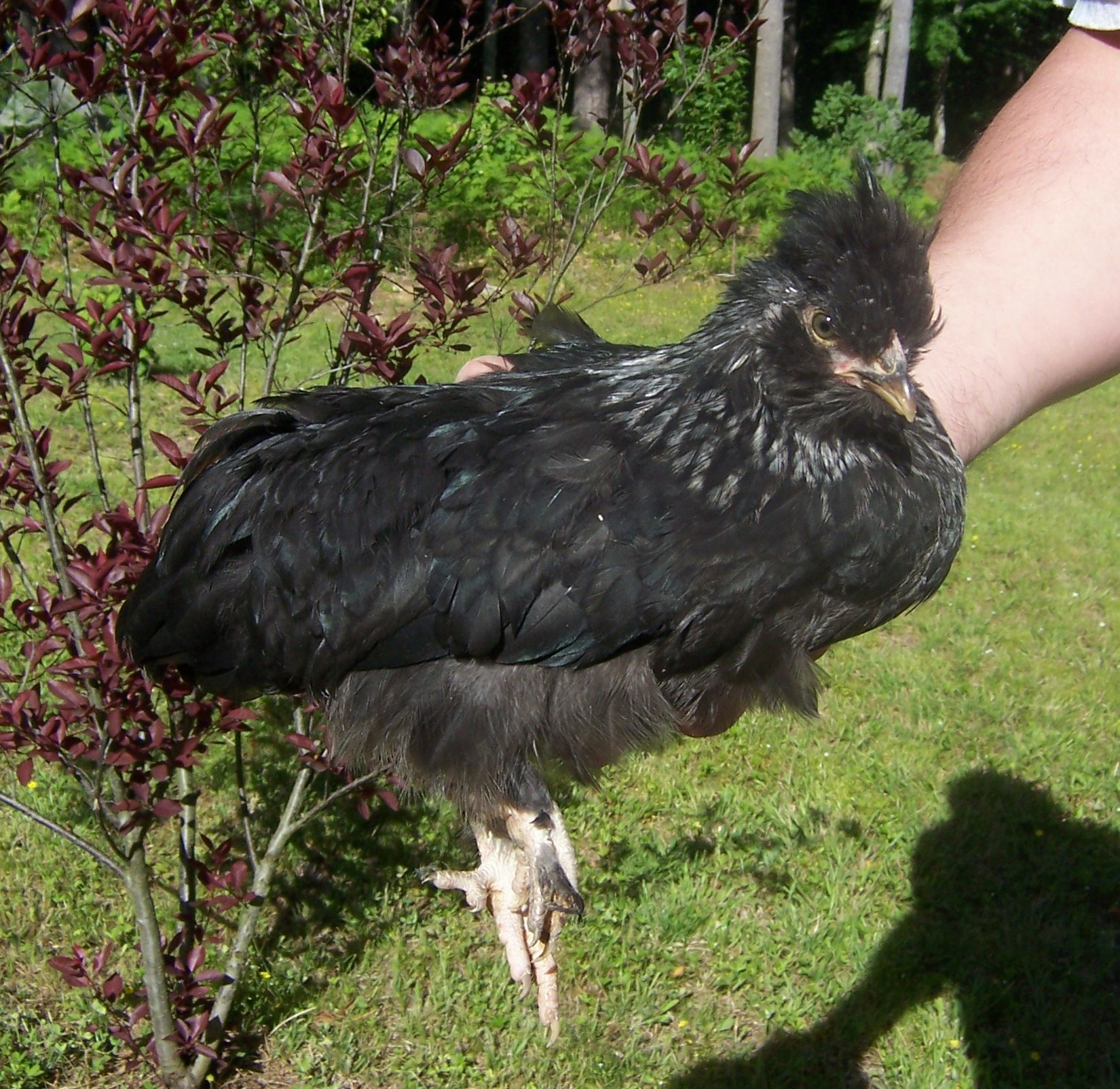 For now though, she is still a runt, much smaller then the other chickens. We attempted to take a picture of her next to a more normal sized hen, but she was running around (and at one point actually became airborne) so much that we weren’t able to pull that off. We did manage to get one picture of her holding still, while she was