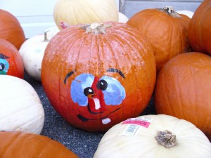 He came home with is 4-Runner stuffed to the gills with pumpkins of every size, shape, color, and some even with painted features (one had a frog!). The chickens are now in pumpkin heaven, and as a side benefit, our yard is very extravagantly decorated for fall. 🙂