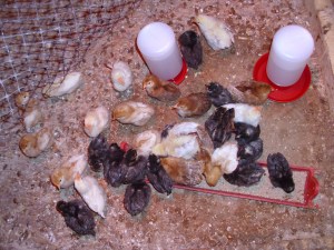 So, week two with the peeps and life is good. Losses have been minimal (despite the frigid temperatures after the balmy ones and a malfunctioning heat lamp). In about 5 months, our egg production should be through the roof. We’re gathering about 30 (or more!) eggs per day now and the peeps are eating and drinking twice as much.