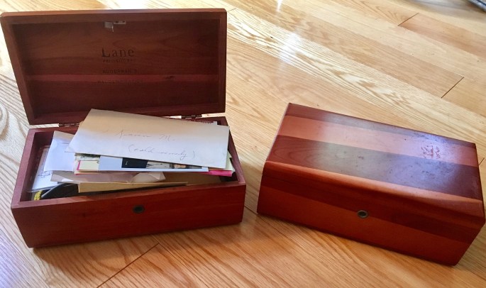 When I graduated from high school, one of the things that I was given was a Lane cedar mini-keepsake box. I know this because, unlike other things I might have been given that day, I still have my Lane cedar mini-keepsake box. One of the reasons that I was so excited to receive it was because my mother had one. It had been on her bureau for as long as I could remember, and she kept who-knew-what in it. I didn’t know, because she kept it locked.
